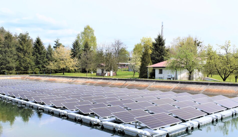 Na początku maja zakończyły się prace montażowe pływającej instalacji fotowoltaicznej na powierzchni wyłączonego dotąd z użytku zbiornika osadowego Wodociągów Chrzanowskich na terenie Stacji Uzdatniania Wody Trzebionka. To pierwsza w naszym rejonie i jedna z zaledwie kilku w Polsce pływająca farma fotowoltaiczna. Jak informuje
