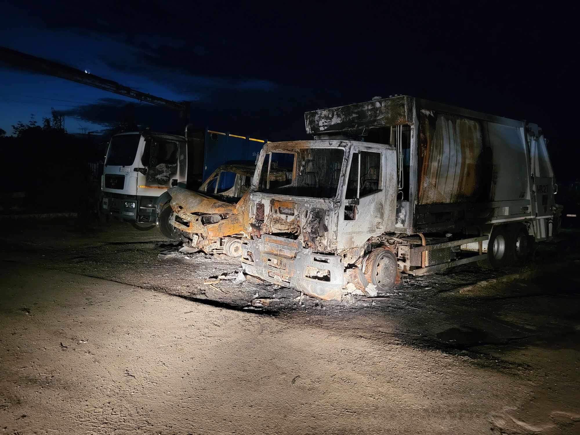 Zdarzenie potwierdza dyżurny Państwowej Straży Pożarnej w Chrzanowie. Pożar wybuchł przed 2 w nocy w niedzielę 13 sierpnia na parkingu przy ul. Kościuszki w Trzebini. Płonęły trzy zaparkowane obok siebie samochody ciężarowe przeznaczone do transportu odpadów.