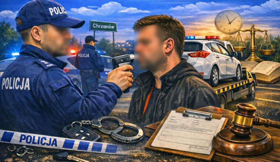 Interwencja przy ul. Pułaskiego w Trzebini szybko zamieniła się w sprawę o większym ciężarze gatunkowym. Policjanci ustalili, że kontrolowany samochód ma tablice rejestracyjne z innego pojazdu, a samo auto figuruje jako skradzione. Do zdarzenia doszło 11 grudnia, gdy trzebińscy mundurowi dostali zgłoszenie o